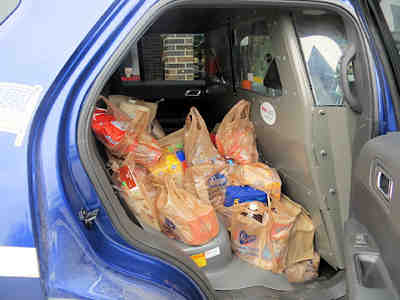 Officer Nick and helper were also collecting non perishable items for the drive.