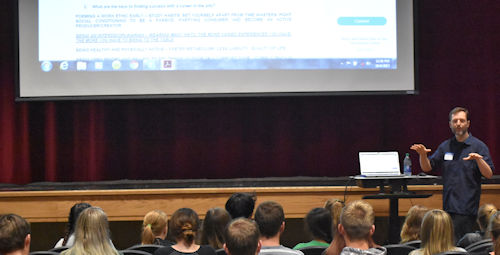 I attached a picture of myself speaking to 30 students in the SJHS auditorium last week. Teachers Kathy Heystek and Jaclyn Charneski had their classes attend my one hour talk on October 4.