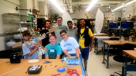 During the time that an entire University of Michigan course was squeezed in a few hours, students were guided through the construction of each element of a homemade lighter-than-air craft. Stations were set up where students were able to construct wooden gondolas, build the propeller air ducts, seal the helium envelope and even see these elements produced by a laser-cutter. Each of these hands-on stations showed the students how each feature of a homemade blimp works, and how each component comes together to make the whole. University of Michigan students handled all electronics work.