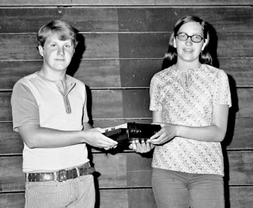 Kathy Boettger, center, daughter of Robert and Marilyn Boettger, receives an award from the Daughters of the American Revolution in 1972.