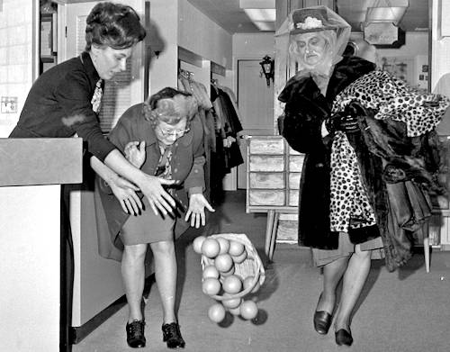 Left to right: Laura Mullaney, Sharon Fitzpatrick, unknown and Shirley Rasmussen. The rest of the ladies are unidentified.