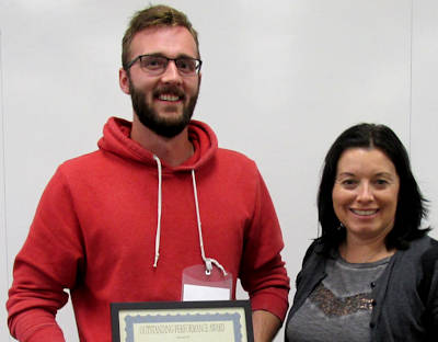 The award is unknown as are the ladies making the presentation. It may be she just became a new member.