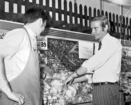 New on the job as of last week as manager of the St. Johns Kroger store is Bob Gemmill, right, pictured with Donald U. Thelen, head of produce.