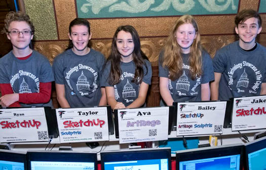 SJMS technology: Students from St. Johns Middle School joined hundreds of others from across the state last week to present technology demonstrations to lawmakers at the state Capitol Building. Shown here are Ryan Minix, Taylor Rowland, Ava Simi, Bailey Bunn and Jake Schaefer.