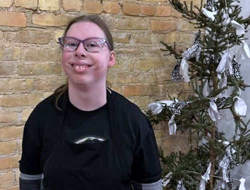 Ava has Williams Syndrome, so sometimes certain tasks are difficult for her and she can have a hard time focusing. She is a big Harry Potter fan, and enjoys the books and movies and would like to go to the Harry Potter world at Universal someday. She loves food and her favorite restaurant is the Olive Garden. She is having a lot of fun working at the salon and excited to meet our guests.