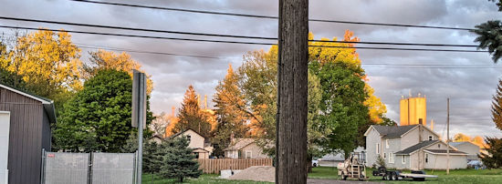 Photo courtesy of Julie Peters from her front yard on Lansing St. one evening last week at sunset with the grain silos and tree tops on Clinton Ave.
