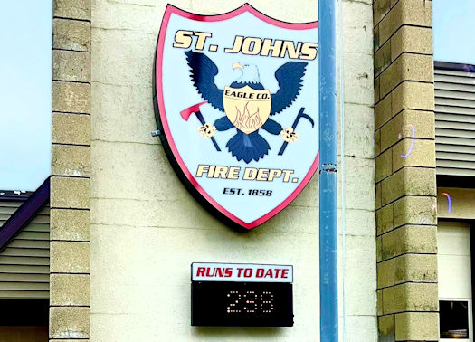 Keeping Count: Ever hear the whistle blow and wonder how busy the St. Johns Fire Department truly is? Next time you drive by the station check out their new Runs to Date sign from Michigan Graphics & Signs.