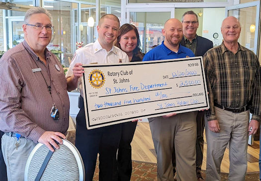 Support: The Rotary Club of St. Johns added their donation to the growing number of individuals and businesses who are supporting the St. Johns Fire Department’s drive for Operation Extrication.
