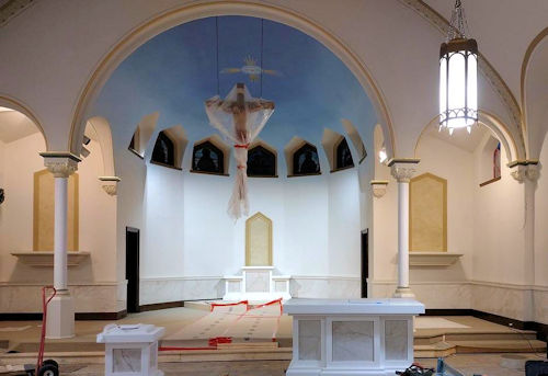 Weekday Masses will continue to be celebrated in the Day Chapel until February 7 when the pew installation should be done. The Eucharist will be reposed in the Day Chapel on weekdays for adoration and prayers until the church is completely available again.
