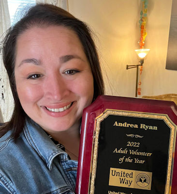 Andrea Ryan, co-founder of the St. Johns Call-In Coalition, received an award as the 2022 Adult Volunteer of the Year from the United Way of South Central Michigan – Capital Area.