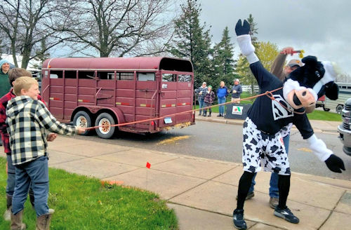 Tagged: It would appear that last Saturday a Supercow wandered away from the Superhero 5K race and onto the fairgrounds during the Clinton County 4-H Livestock Tagging event. As you can see, the tagging was successful.