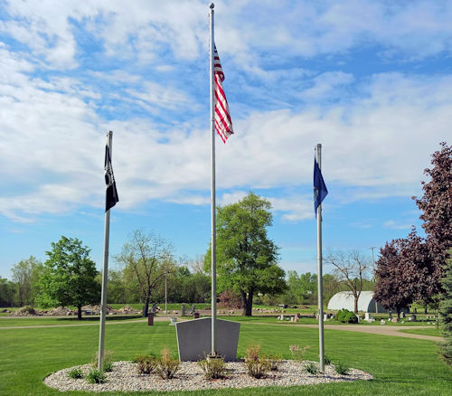 Flag proudly waves: Brian Woodbury’s flag, donated by his widow Maralyn, is now flying in front of Mt. Rest Cemetery. It will be there until it needs to be replaced.