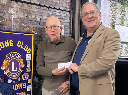 Lions Celebrate 75th: Last Thursday the St. Johns Lions Club presented Bill Tennant of the Clinton County Arts Council with a check representing a percentage of food trailer sales at the Concerts in Parks summer series.